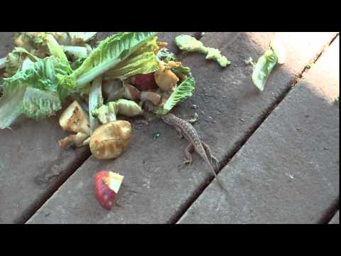 This Side-blotched lizard has seen the flies visit Kobae's food when he's done and though it didn't work this time, it will.